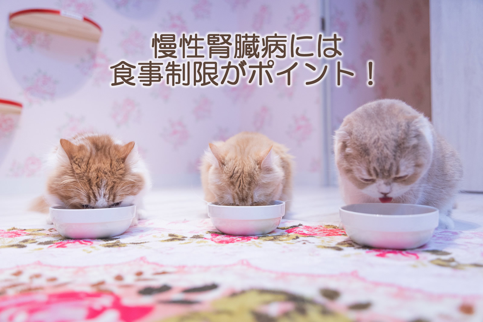 リンの摂取を制限した療法食にすることで、生存期間が長くなるということは証明されていますので、まずは、この「リン」を制限した食生活にすることが重要です。