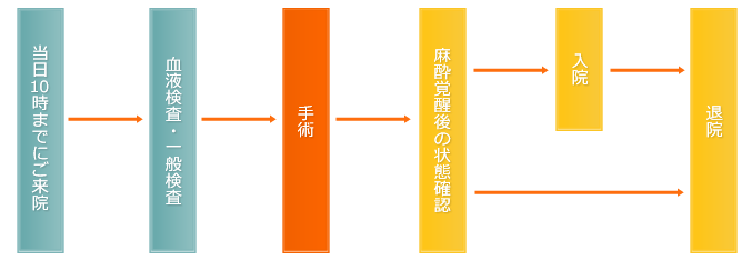 手術は予約制となっております。ご希望日の前日まで予約をお受けしています。退院日とその翌日には飼主様が手術後の様子を見られる日をお選びください。
