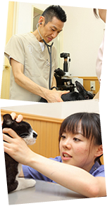 飼主様と動物たちがよりよい生活を送れ、幸せであるよう、飼主様と動物たちが「こころ」と「体」がともに健康な状態が保てるよう最大限バックアップ、サポートさせていただく。