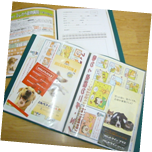 体重管理、飼い方、病気についての案内、ケアの仕方などをファイルにして、その子の生活記録ファイルとして使っていただいたり、こちらから病気やケアなどの案内をお渡しした時にファイルに入れて使っていただけるように用意しております。